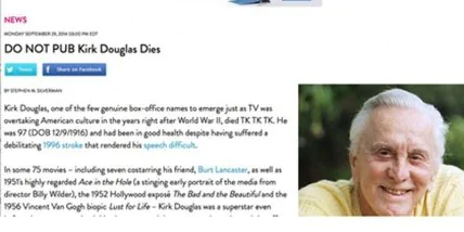Дуглас не первая знаменитость, ставшая жертвой подобной ошибки. Так, в 2008-м агентство Bloomberg разместило на своем сайте новость о смерти главы Apple Стива Джобса (умер в 2011 году), после чего сразу опубликовало опровержение и извинения за ошибку.