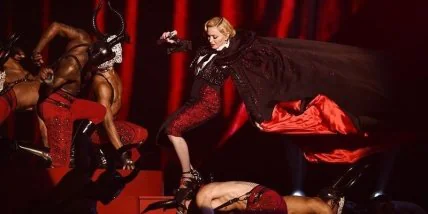 Инцидент произошел 25 февраля на церемонии вручения Brit Awards в Лондоне. Мадонна надела длинную мантию и поднялась на ступени, ведущие к расположенному выше подиуму. Танцор должен был эффектно сдернуть плащ с исполнительницы, но она не успела развязать шнуровку на шее. В результате, когда артист потянул накидку, Мадонна упала, пролетев три ступени.