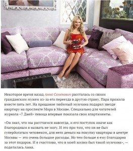 Певица Анна Семенович опровергла все слухи о том, что она рассталась с возлюбленным, и он ей подарил квартиру в Москве. Девушка заявила, что у них все хорошо, и она не понимает, откуда берутся такие слухи. Видимо, Анна запамятовала, что еще пару месяцев назад в одном из своих интервью она сама рассказал об этом благородном поступке, пишет интернет издание.