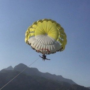 Анастасия Волочкова продемонстрировала шпагат во время полета с парашютом. Такой трюк балерина выполняла в первый раз.