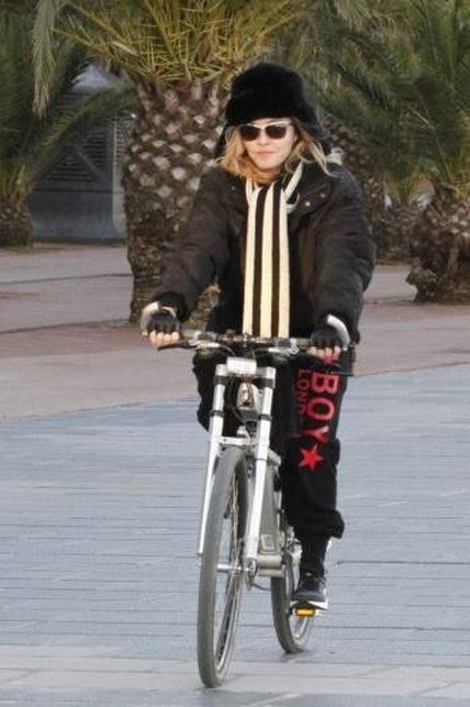 В Сеть попали снимки Мадонны, катающейся на велосипеде. Стало известно, что голливудская поп-королева прокатилась на велосипеде по одной из площадей в Мадриде. Со стороны в женщине, которая надела безразмерную теплую куртку, спортивные штаны с красными надписями и меховую шапку-ушанку, сложно узнать Мадонну, тем более солнцезащитные очки дополнили 100% маскировку.