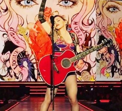 "Фирменную" улыбку Мадонны сложно не узнать, видимо поэтому папарацци и сфотографировали ее, а потом выложили эти снимки в Интернет. Сама Мадонна в это время готовится к выступлению в Барселоне, о чем она сообщила у себя на страничке в Инстаграме, выложив и подписав фото: "Barcelona R U ready?", что в переводе означает: "Барселона, ты готова?", на котором она стоит на сцене в ярком и супер-откровенном наряде и держит гитару.