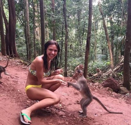 Фотография Виктории попала в Сеть благодаря ее коллеге по "цеху". Слава из группы "НеАнгелы" опубликовала фотографию своей соратницы, на которой она выглядит не так презентабельно, как на сцене. Неизвестно, дала ли Вика согласие на то, чтобы Слава делилась такой фотографией, но поклонников группы снимок явно повеселил. Кстати, заслуга в позитивной реакции подписчиков Славы не в том, что Вика на фото в купальнике, с мокрыми волосами, абсолютно не накрашена и находится в кругу милейших обезьянок, а скорее в том, как подписала фото Слава: "Новый состав группы НЕАНГЕЛЫ. Пока я в декрете , мне нашли замену) А она ничего, новая Рыжая) Что скажете?".
