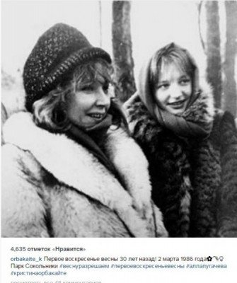 На снимке запечатлена Кристина со своей звездной мамой Аллой Пугачевой. Под снимком Орбакайте написала: "Первое воскресенье весны 30 лет назад. 2 марта 1986 года. Парк Сокольники". Поклонники весьма обрадовались опубликованному снимку и поблагодарили Кристину за фотографию из семейного архива, которую можно даже приравнять к исторической.