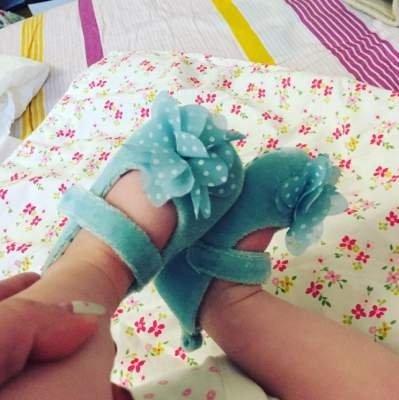 Украинская певица Тоня Матвиенко показала своим поклонникам новое фото маленькой дочери Нины, которой недавно исполнилось 3 месяца. На фото видны лишь крохотные ножки ребенка в зеленых туфельках, Антонина по-прежнему не показывает лица своей малышки.