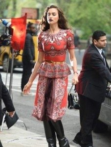 Вчера в Центральном парке Нью-Йорка проходила съемка фотосессии для журнала Vogue с участием супермодели Ирины Шейк. На одном из снимков Ирина позировала перед камерами в платье бренда Alexander McQueen.