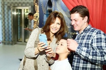 Супружеская пара вместе с детьми посетили специальный показ фильма "Алиса в Зазеркалье".