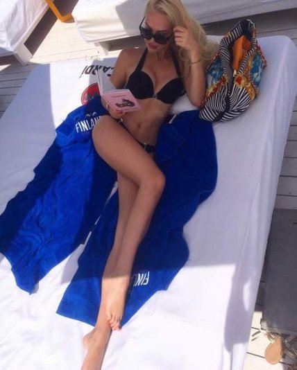 Сегодня Снежана отправилась в City Beach Club Kiev, где позировала на камеру с ежедневником в руках. Девушка запечатлена на снимке лежащей на шезлонге в черном бикини, который выгодно подчеркивает ее идеальную фигуру.