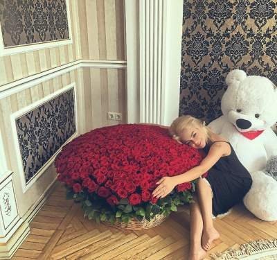 Яркая блондинка Алина Гросу заинтриговала поклонников недавним снимком в блоге. Похоже, артистка счастлива в личной жизни, ведь на фото она позирует с огромным букетом красных роз. На снимке Гросу обнимает цветы, а рядом с ней сидит еще один презент - большой плюшевый мишка.