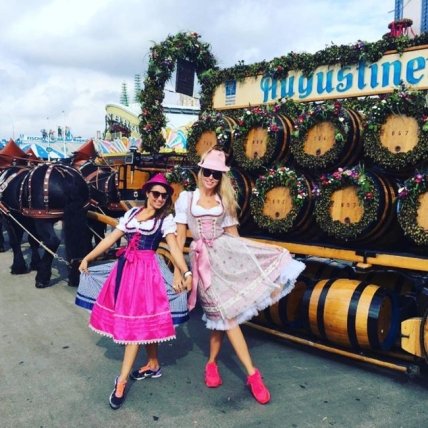 Украинская певица не смогла устоять от соблазна и вместе с подругой посетила немецкий Октоберфест. Оля надела традиционный наряд в розовых цветах и дополнила его стильными аксессуарами и обувью.