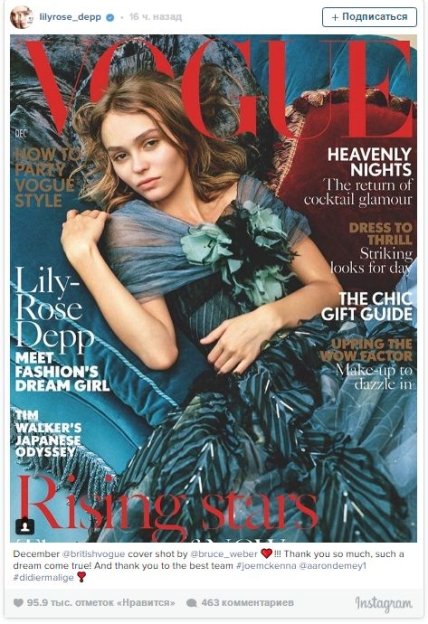 Глянцевые издания все чаще делают ставку на молодых звезд - и в декабрьском Vogue очередь дошла до 17-летней Лили Роуз Депп.