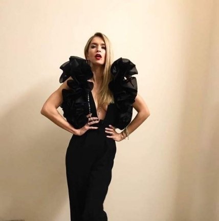 На сцену же певица вышла в очень откровенном наряде. Черный комбинезон был украшен гигантскими воланами, которые, не только создали объем, но и еще больше подчеркнули огромный V-образный вырез, практически полностью обнаживший грудь 35-летней певицы. Свой соблазнительный образ Вера дополнила помадой винного оттенка и украшениями.