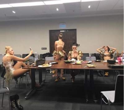 Оля Полякова приоткрыла занавес, опубликовав снимок из гримерки, на котором она с девушками готовится к выступлению.