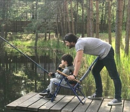 На первом фото Притула позирует с сыном и молодой супругой на концерте, а на втором - рыбачит вместе с Димой.