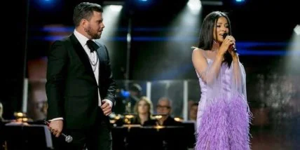 Злата с восторгом комментирует сотрудничество с популярным латышском певцом: "Все было очень спонтанно, дуэт уже готовили в Юрмале. А наши латвийские друзья помогали с произношением и переводом. Мне кажется, что у нас с Интарсом очень сочетаются голоса, – сказала Злата Огневич. Для концерта Злата выбрала оригинальный и смелый наряд с перьями от украинского стилиста и дизайнера Назара Дидыка.