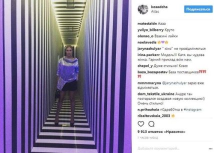 На ней, кроме традиционного аксессуара на голове, была ассиметричная блестящая серебристая блуза и короткие черные шорты. Снимок появился в Instagram. В таком наряде Осадчая пришла на Вечер молодого кино, который состоялся в Киеве.