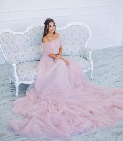 Фолловеры Саши отметили, что она отлично выглядит, да и платье выбрала для фотосета сногсшибательное, правда в нем, скорее всего, ходить невозможно, а только сидеть или лежать, потому что юбка и шлейф очень длинные и пышные.