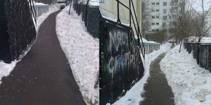 Юрий Урсу заметил, что снимок содержит следы правок. Он сфотографировал дорожку в этот же день, она оказалась очищена, но не настолько ровно как на фотографии властей. А кроме этого на лестнице, что попала в кадр была закрашена надпись баллончиком ''Мясу смерть!'', вместо нее на снимке управы красовалась чистая стенка.