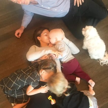 "Наша Болдуинитос готовится к появлению нового члена команды грядущей весной!"– подписала она семейный снимок, на котором запечатлена вместе с мужем и детьми.