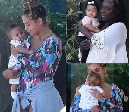 Снимки были опубликованы на фан-страницах Бейонсе в Instagram, где поклонники обсуждают не только очаровательных малышей, но и внешний вид звездной мамы.