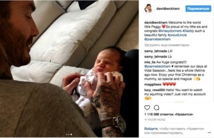 "Добро пожаловать в этот мир, маленькая Пегги. Я так горжусь своей сестрой и поздравляю ее с этим событием", - написал бывший футболист на своей официальной странице в Instagram.