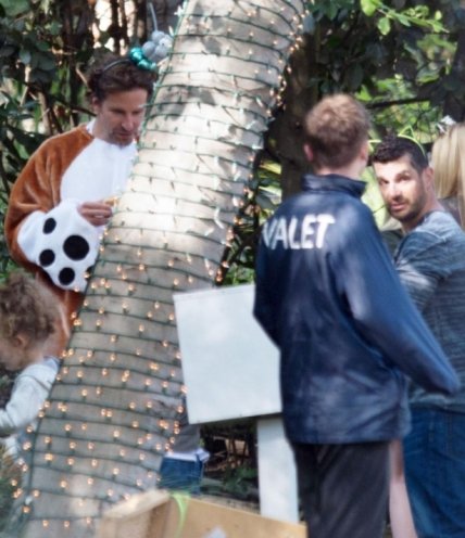 Папа именинницы нарядился в большую рыжую собаку, а мама перевоплотилась в кошку, нарисовав на лице усы и нос. А вот фотографий Леи нет — Ирина и Брэдли пока скрывают ее личико.