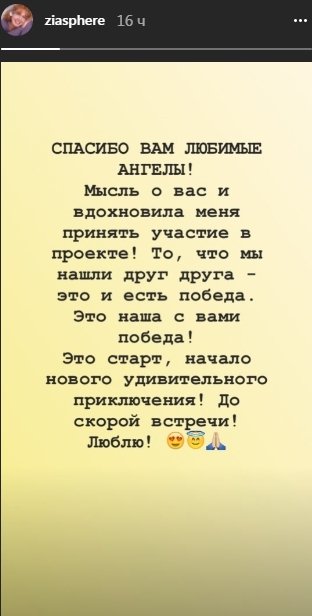 В Instagram Stories Зианджи появилась запись, в которой певица благодарит всех своих поклонников, которых называет "ангелами", за поддержку и помощь.