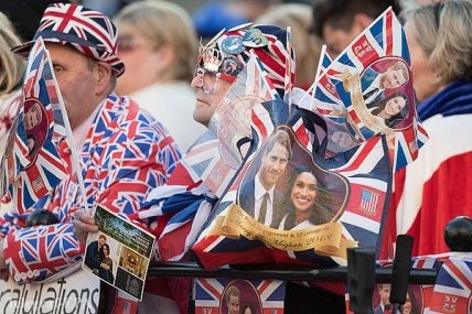 На улицах в Виндзоре задолго до начала церемонии собрались тысячи людей. Многие держали в руках флажки Великобритании и Канады. Некоторые надели на головы забавные шляпы.