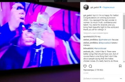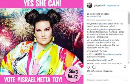 Ранее организаторы предложили актрисе стать ведущей конкурса и надеялись, что звезда согласится, ведь она болела за представительницу Израиля на Евровидении-2018 Нетту Барзилай и поддерживала девушку в соцсетях, призывая всех голосовать за нее.