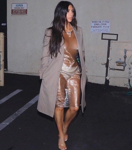 Так, на этот раз Ким опубликовала соблазнительное фото, где она одета в прозрачное платье и пальто-пиджак сверху на своей странице в Instagram.