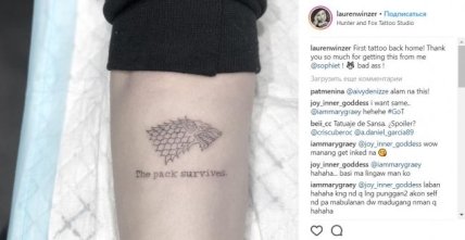 Софи Тернер сделала татуировку со спойлером финала "Игры престолов"