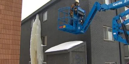 В канадском Саскатуне представители муниципальных служб удалили с жилого дома сосульку высотой в 3 этажа.