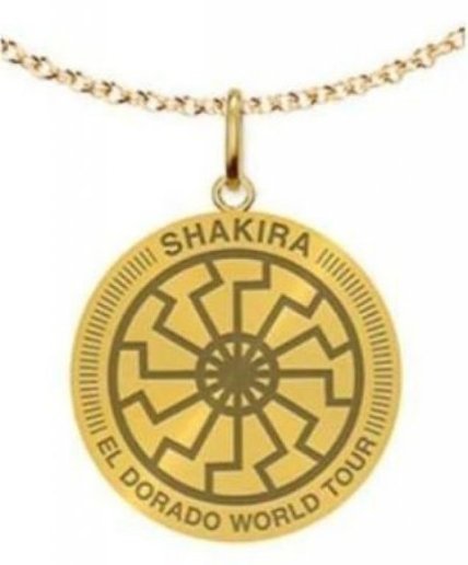 На странице официального интернет-магазина концертной продукции и в Facebook-аккаунте Шакиры пользователи заметили золотую цепочку с медальоном, который очень похож на нацистский символ "Черного солнца". Кроме того, на кулоне были надписи "Шакира" и "Всемирный тур Эльдорадо".