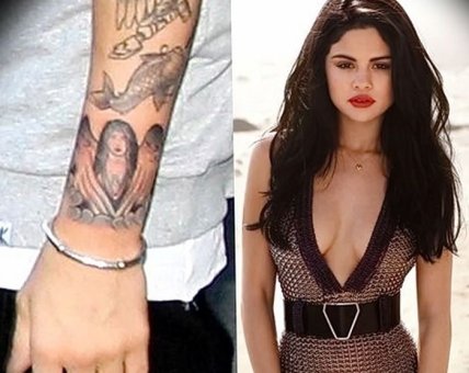 Рисунок Селены на теле Бибера в виде ангела появилось еще в 2011. Когда Джастин в первый раз расстался с Селеной, он утверждал, что избавится от тату: "Это моя бывшая девушка, все ее узнают. Наверное, я ее "выведу"…"