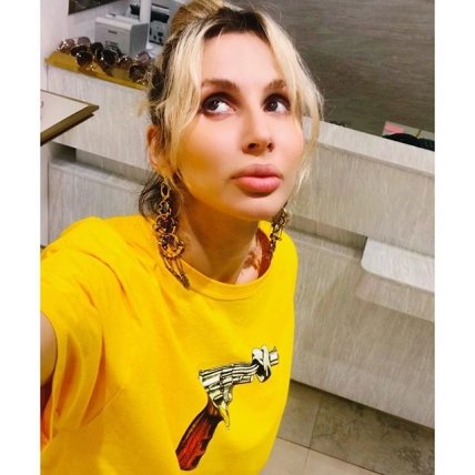 Артистка снова радует поклонников новыми фото из своей личной жизни. Светлана Лобода выложила селфи в ярком образе - желтой футболке с рисунком револьвера. Волосы заколола в гульку и одела длинные серьги, на лице певицы минимум косметики и уставшие от работы глаза.