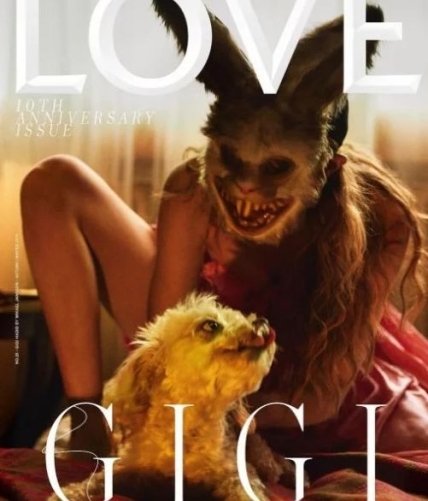 Все дело в том, что на обложке нового выпуска журнала Love Magazine знаменитость позировала в ужасающей маске кролика. Вместе с Джиджи на фото появилась собака, которую, по всей видимости, ничуть не испугал внешний вид Хадид.