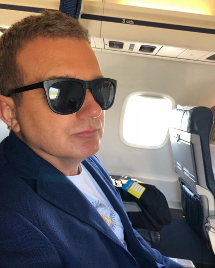 Телеведущий и актер Юрий Горбунов сделал селфи в самолете. Юрий на фото получился очень брутальным. В очках и пиджаке сидя на кресле Юрий ждет посадки и желает поклонникам "доброго утра".