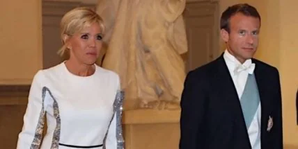 Новый образ Бриджит Макрон вызвал много обсуждений. Для встречи с королевой Маргрете II и королевской семьей Дании супруга президента Франции выбрала белое платье в пол от своего любимого бренда Louis Vuitton. Платье украшено серебристыми пайетками. Образ первая леди Франции дополнила лодочками и клатчем в оттенке металлик.