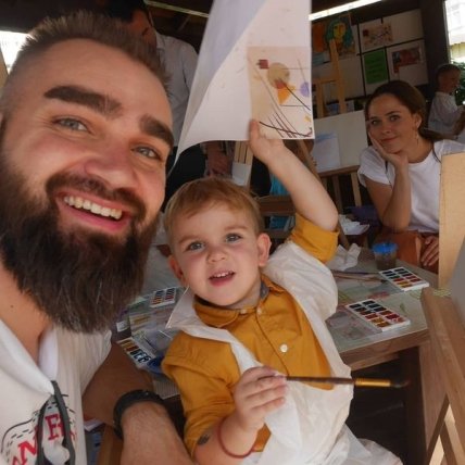 "2. Мама, сын-абстракционист и папа, который (молодец) не забыл, что сегодня годовщина свадьбы",- продолжает певица. Как видим, на фото счастливая семья. Радостные лица музыканта и его маленького сына, а на заднем фоне мама.