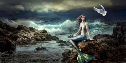Русалка - в славянской мифологии русалки — разновидность проказливой нечисти. Ими становились утопленницы, девушки, умершие недалеко от водоема, либо люди, купающиеся в неурочное время. Русалок иногда отождествляли с "мавками" (от старославянского "навь" — мертвец) — детьми, умершими без крещения либо задушенными матерями.