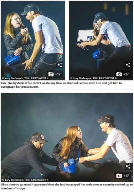 Сейчас британские журналисты ищут информацию о девушке, поцеловавшей Энрике в Киеве, чтобы поговорить с ней и спросить: что же она чувствовала во время такого близкого общения с женатым певцом.