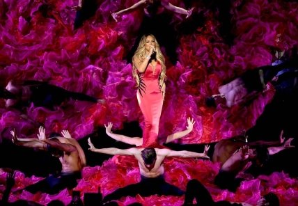 48-летняя артистка вышла на сцену в розовом платье-футляре с пышным подолом. Сама Мэрайя стояла на сцене без движения из-за плотно обтягивающего все тело наряда. Вместо нее все танцы исполняли полуобнаженные танцоры. Несмотря на яркий антураж и красивую хореографию, зрители отреагировали на выступление певицы неоднозначно.