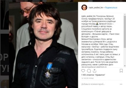 На своей странице в Instagram музыкальный продюсер, работавший с группой "Ласковый май" Андрей Разин рассказал, где и когда похоронят Евгения Осина: