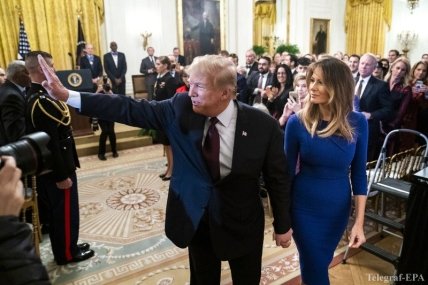 Первая леди США в очередной раз потрясла общественность своим нарядом. Мелания Трамп пришла на официальное мероприятие в приталенном синем платье.