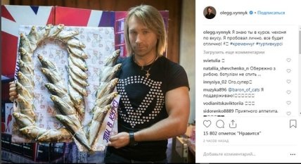 Более того, увидев это творение, Олег Винник заговорил стихами: "Я знаю ты в курсе, чехоня по вкусу. Я пробовал лично, все будет отлично!" – прокомментировал изображение певец.