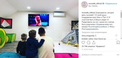 На снимке MONATIK изображен с детьми во время просмотра ТВ-шоу. Парни позируют к фотографу спиной.