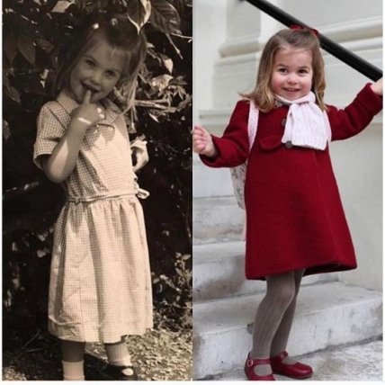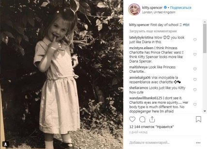 Очень легко спутать маленькую Китти на черное-белой фотографии с дочкой принца Уильяма, которая снята почти в такой же позе на ее первом школьном фото. После того, как 27-летняя леди Китти опубликовала свое фото с подписью "Первый день в школе", посыпались комментарии: "Это принцесса Шарлотта?", "Вау… это точно принцесса Шаролотта Кэмбриджская", "У принцессы Шарлотты гены Спенсер".