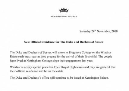 Внимание прессы снова сосредоточилось вокруг британской королевской семьи. Уже весной следующего года принц Гарри и его беременная супруга Меган Маркл покинут Кенсингтонский дворец и переедут в Коттедж Фрогмор (Frogmore Cottage), где смогут начать полноценную семейную жизнь вдали от родственников и навязчивых папарацци.