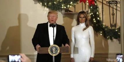 Достаточно эмоциональное выступление продолжила его супруга - 48-летняя Мелания Трамп. Она лаконично обратилась к высокопоставленным гостям и пожелала им прекрасных праздников: "Добро пожаловать в Белый дом! Приятного вечера. Счастливого Рождества и Нового года".