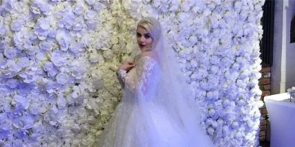 На фото Мика в шикарном длинном пышном платье белого цвета, на котором сверкают небольшие камни сваровски. Также певица выбрала фату и небольшую диадему, но волосы аккуратно подобраны. Макияж подчеркнула бордовой помадой.